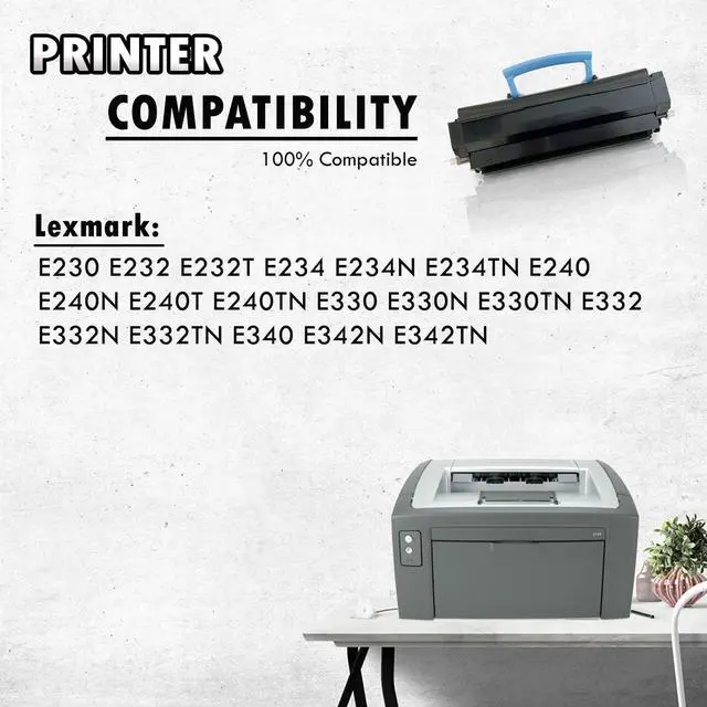 Compatible Lexmark Printer Models: Lexmark E230 E232 E232T E234 E234N E234TN E240 E240N E240T E240TN E330 E330N E330TN E332 E332N E332TN E340 E342N E342TN.