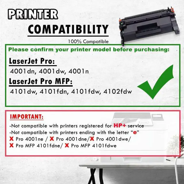 Compatible HP Printer Models: HP LaserJet Pro 4001dn, 4001dw, 4001n, LaserJet Pro MFP 4101dw, 4101fdn, 4101fdw, 4102fdw
