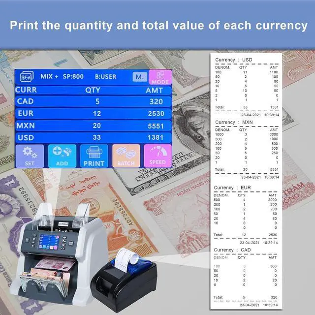 You can print the number, amount, total amount and serial number of each banknote. You can directly connect to the RIBAO banknote counters and 115200 borate.