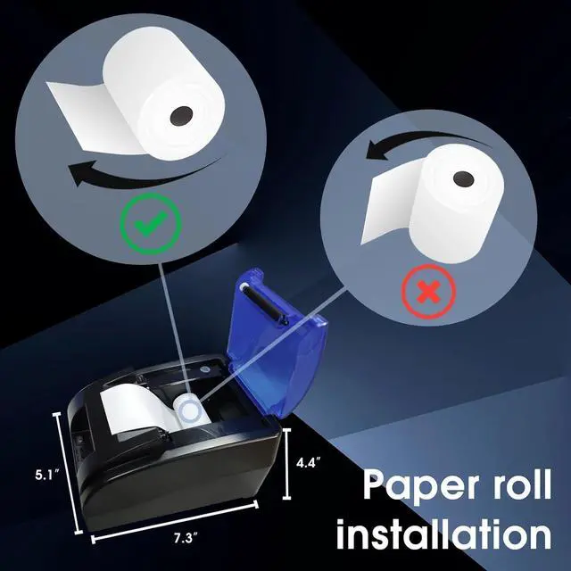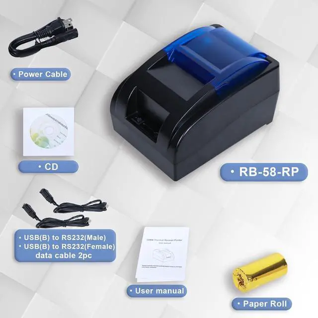 [Efficient high -speed printing] The speed of the printer reaches 90mm/second. You can open a transparent cover and replace the paper roll. Easy installation and maintenance. Print paper size 58mm.