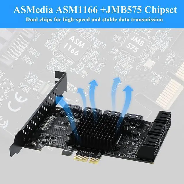 Powerful chipASMedia ASM1166 Chip, with heat sink, long-lasting high temperature resistance, high-speed and stable transmission.