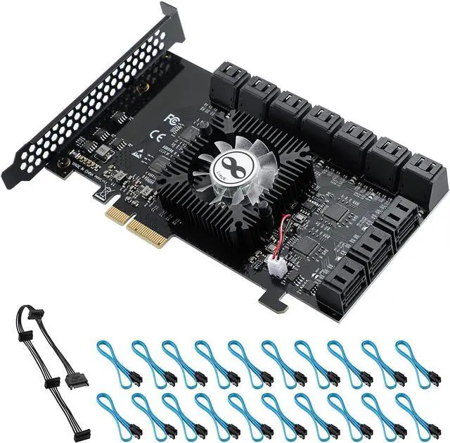 The package includes 1* Pcie 4x 20 SATA-Ports card,1* Product manual,20* SATA cables,1* SATA power splitter cable.If you have any questions, please feel free to contact us, we will reply you within 12 hours.