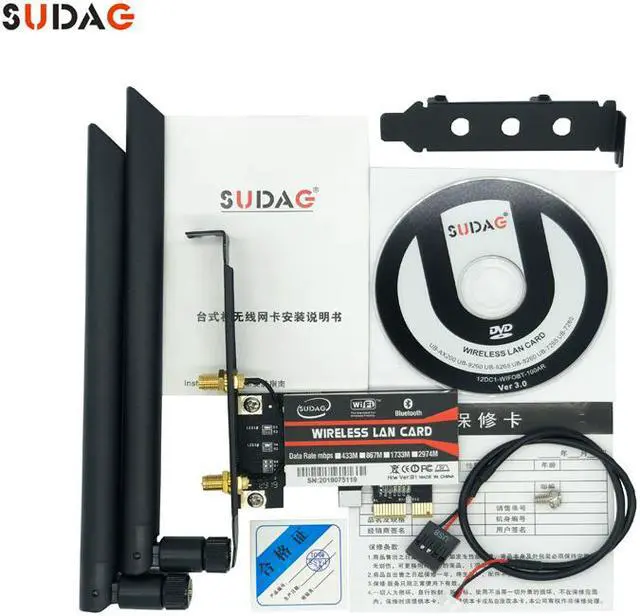 Package Include: 1 x Desktop card 1 x Half bracket 1 x Female USB header cable 1 x Set of screws 2 x External antenna Cables 1x CD Driver