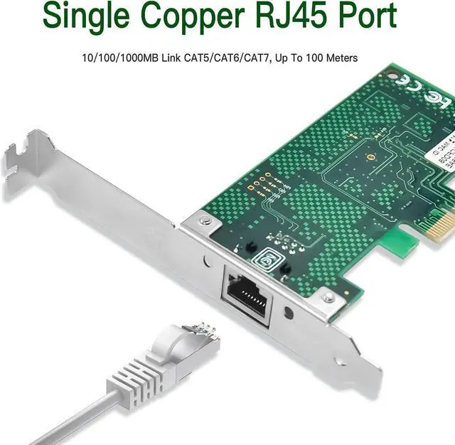 Network ConnectionThis 10/100/1000Mbps PCI Express network card have single RJ45 Ports, up to 100m of CAT5/CAT6/CAT7 connection meeting the demands of data center environments, PCIe v1.1 (2.5 G T/s) x1 Lane compatible with PCIE X1, X4, X8, X16 Slot.