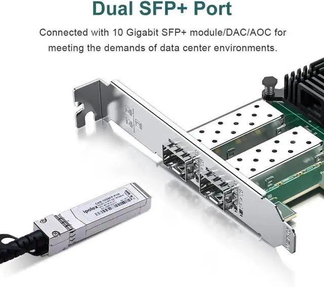 ^^: Windows Server 2012/2016/2019, Windows7/8/10, Linux, VMware ESX/ESXi 5/6/7, FreeBSD 11/12/13/14, Ubuntu 20/22. ^^.: Dual SFP+ ports, connect to SFP+ modules/DAC/AOC. Full height and low profile bracket for standard computer and servers.