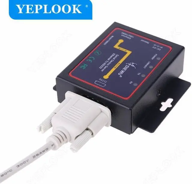 • Ethernet RJ45 to RS232 DB9 Serial Port Device Server Converter Industrial Ethernet LAN Adapter Support TCP/RTU/UDP Modes