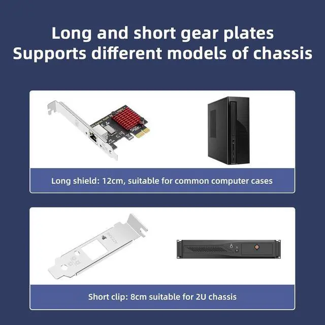 This Single port 5Gbps PCIe network card adds one copper Ethernet port to your Server or Desktop computer and provides Multi-giga-bit Ethernet access to your network at five speeds: 5Gbps, 2.5 bps, 1G, 100Mbps and 10Mbps