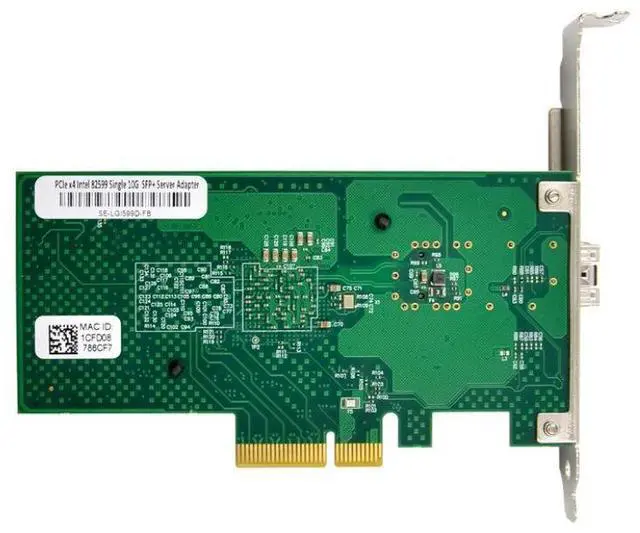The PCI Express x4 interface (PCIe 2.0) ensures seamless integration into a variety of server platforms while providing sufficient bandwidth to support full 10Gbps line-rate performance. The SFP+ slot supports fiber optic transceivers, enabling flexible deployment across campus networks, storage environments, and long-distance connections.