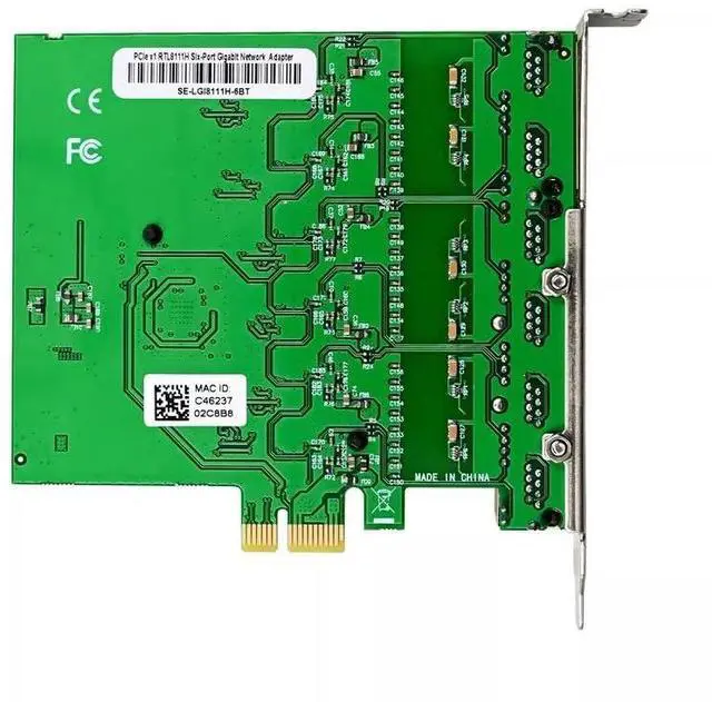 Expand your system's networking capabilities with this PCIe x1 6-Port Gigabit Ethernet Network Card. Featuring six independent 10/100/1000Mbps RJ45 ports powered by Realtek RTL8111H Gigabit Ethernet controllers, this high-density adapter is the ideal solution for servers, soft routers, virtualization hosts, and multi-network environments requiring reliable, high-bandwidth connectivity.