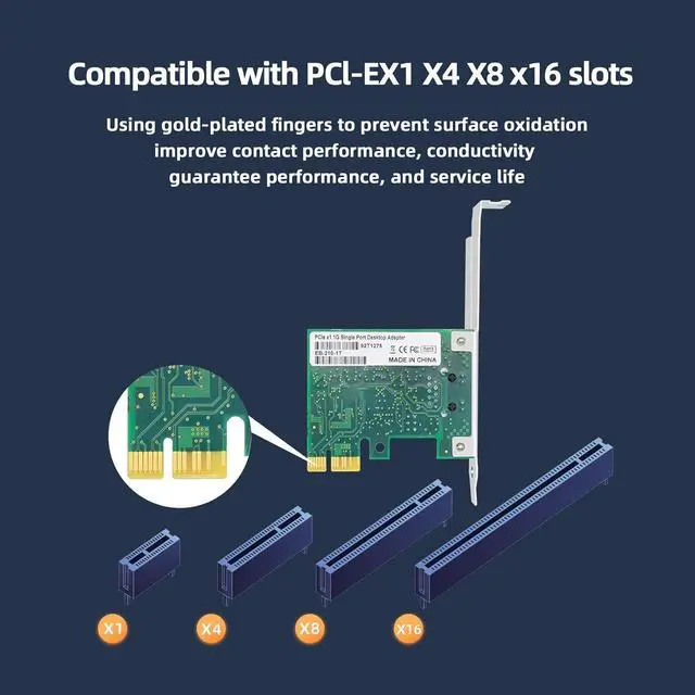 giga-bit Ethernet PCIE Network Card, PCI Express Single Port Desktop Network Card, with I210 Chip RJ45 LAN NIC Wired Network Adapter Supported Windows,Linux,Ubuntu