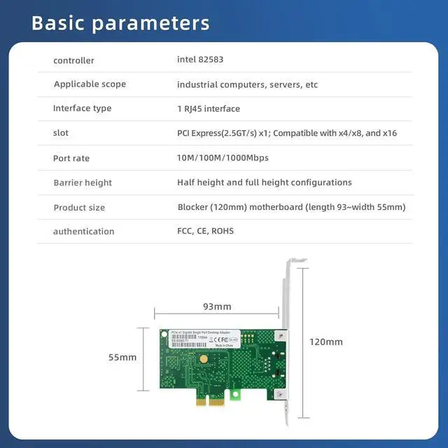 This Single port 5Gbps PCIe network card adds one copper Ethernet port to your Server or Desktop computer and provides Multi-giga-bit Ethernet access to your network at five speeds: 5Gbps, 2.5 bps, 1G, 100Mbps and 10Mbps