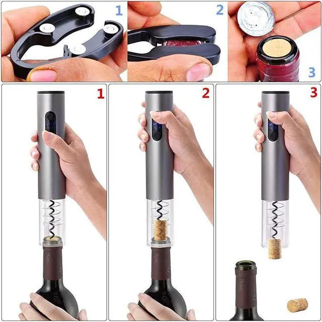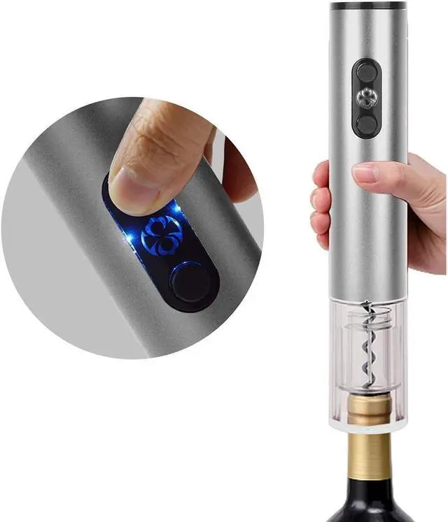 Wine Bottle Opener with Foil Wine Cutter, Electric Corkscrew, 4 AA Battery Operated Opener One Touch Operation and LED Indicator, Compact & Portable Perfect for Travel, Silver