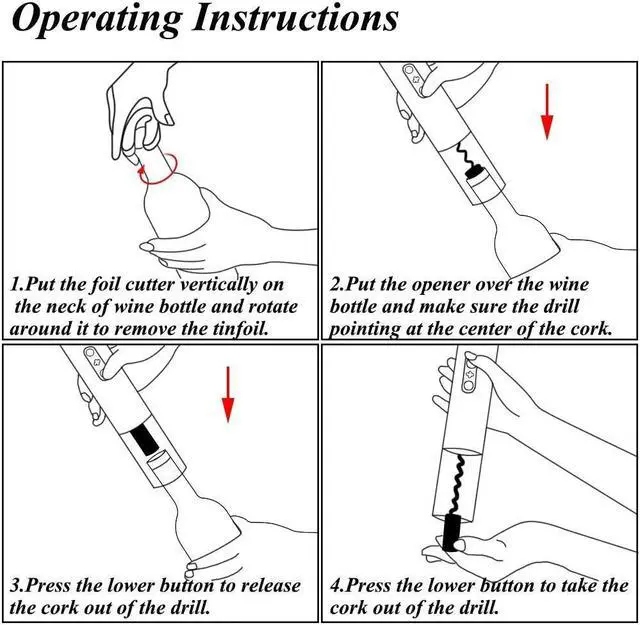 The operation is simple, press and hold the "start button" at the bottom to take out the cork, press and hold the upper "back button" to exit the cork without damaging the cork.