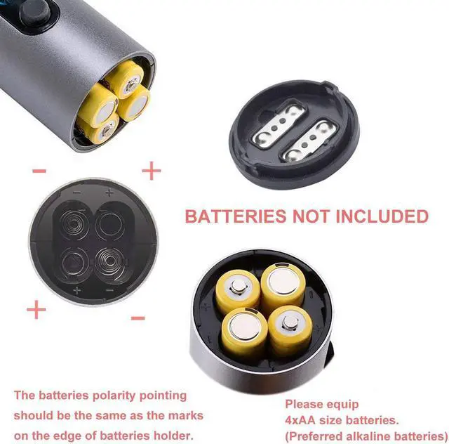 Use 4 AA batteries and support charging function, fully charged can open more than 80 bottles continuously; metal frosted body, with battery charging hole, easy to use.