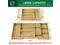 Customizes storage with slots (fits 4" espresso spoons to 9" salad forks) and removable dividers that create open compartments for large cutlery