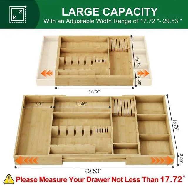 29.5-Inch Adjustable Drawer Organizer - Expandable Utensil Storage with 8 Customizable Compartments