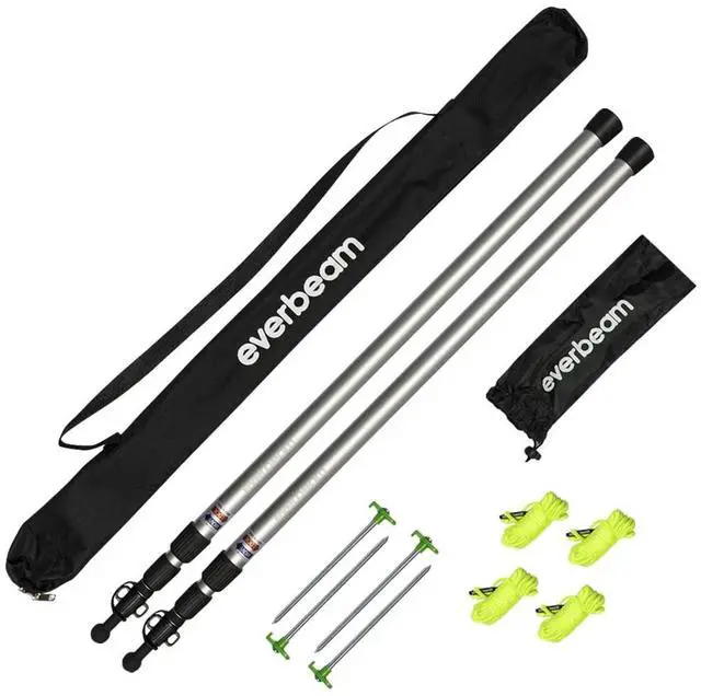 | Include | 1 telescoping tarp pole, 2 guy lines, and 2 stakes | 2 telescoping tarp poles, 4 guy lines, and 4 stakes |