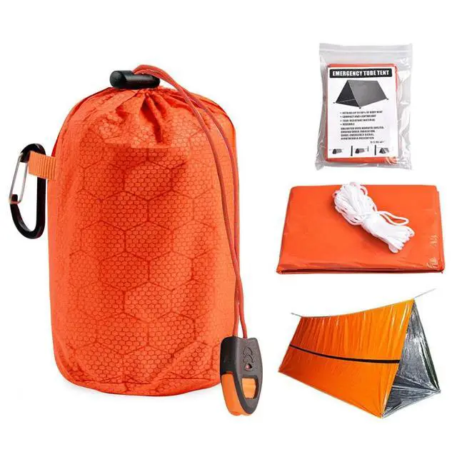 High Tech Aluminum Coated PE Material, Keep warm and alive in all weather, all seasons and all circumstances. This waterproof and windproof emergency bivy can protect you from extreme cold and keep you warm by reflecting back and retaining 90% of heat.
