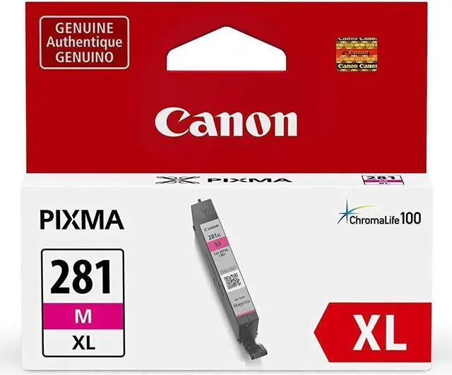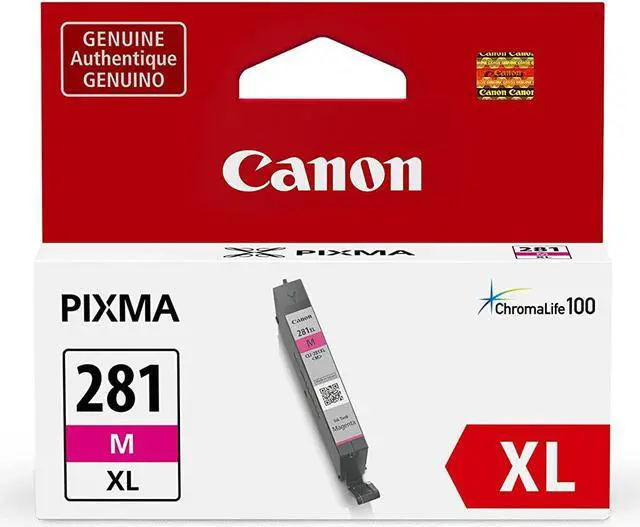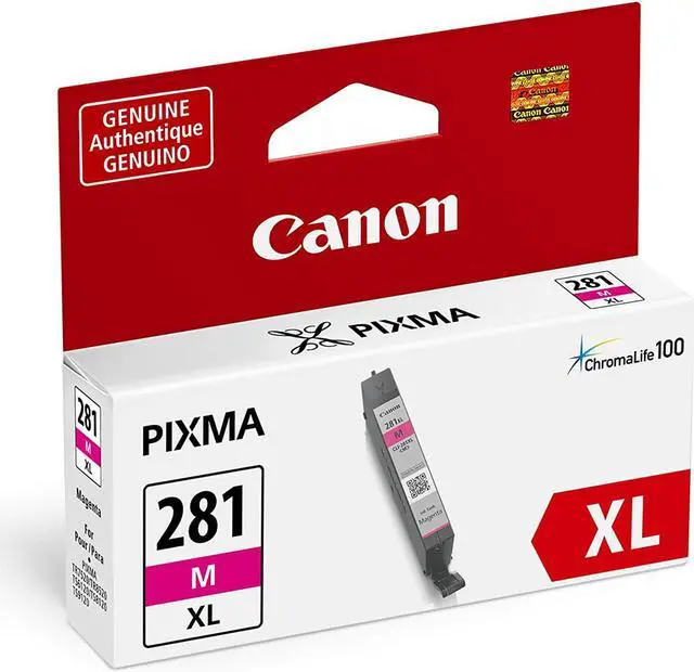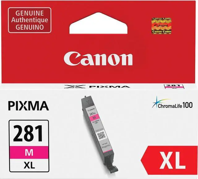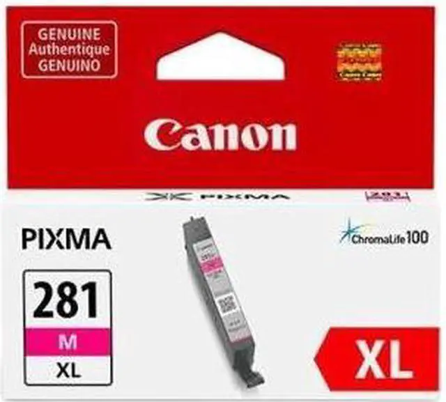 Beautiful, long-lasting inks for photos at a great value. These dye-based inks are used for printing great looking photos and images. Combined with Canon photo paper these protect your photos with the ChromaLife100 system for beautiful, long-lasting photos. The ink tanks can help you save money, print more when you need to, and extend time between replacing ink tanks. Device Types: Inkjet Printer; Color(s): Magenta; Supply Type: Ink; Market Indicator (Cartridge Number): CLI-281.