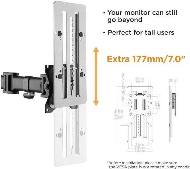 • This holder features easy installation on monitor mounts with industry standard mounting patterns (75mm x 75mm/100mm x 100mm).