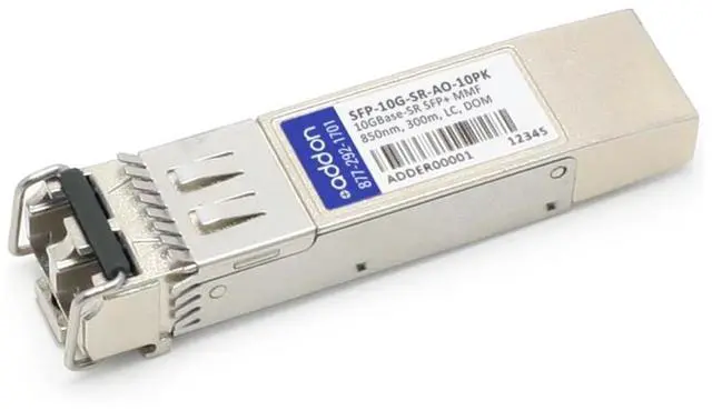 This 10-pack of Cisco® SFP-10G-SR compatible SFP+ transceivers provides 10GBase-SR throughput up to 300m over multi-mode fiber (MMF) at a wavelength of 850nm using a LC connector. It is guaranteed to be 100% compatible with the equivalent Cisco® transceiver. This easy to install, hot swappable transceiver has been programmed, uniquely serialized and data-traffic and application tested to ensure that it will initialize and perform identically. Digital optical monitoring (DOM) support is also present to allow access to real-time operating parameters. This transceiver is Trade Agreements Act (TAA) compliant. We stand behind the quality of our products and proudly offer a limited lifetime warranty.