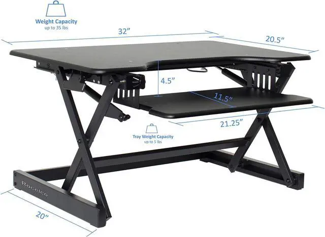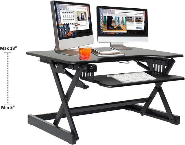 - Retractable ergonomic keyboard tray: 4. 5" Spacing between keyboard tray and desktop keeps monitor at proper ergonomic height to prevent neck strain while sitting or standing