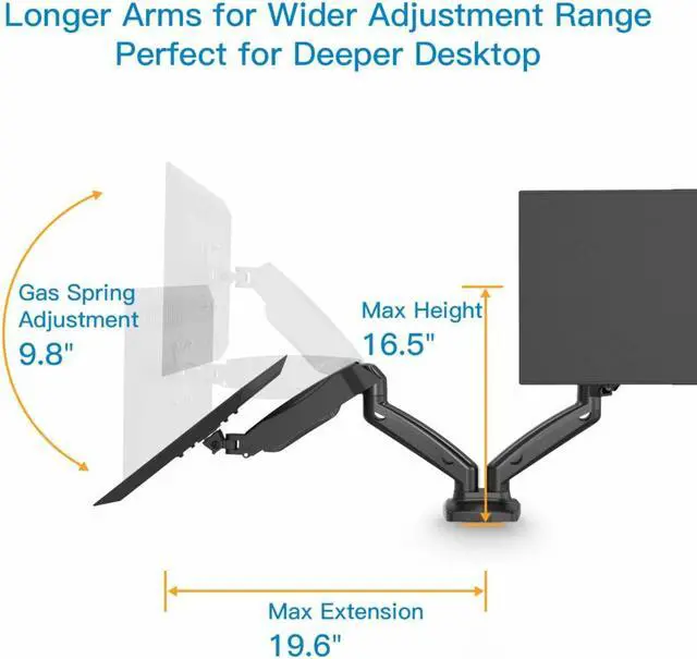 Work doesn’t have to feel like work if it feels effortless and comfortable. MotionGrey’s ergonomic dual monitor arms features many state of the art technologies such as our easy installation VESA Quick release plate, a clamp and grommet base set up to meet your workspace's needs, as well as dual USB openings to enhance wire management. All designed to enable easy and instant personalization for your workspace maximizing your comfort, health, and productivity. Users are encouraged to align their monitors at a correct height to prevent eye and neck strain. Make your workspace become clutter-free, allowing a lower stress environment.