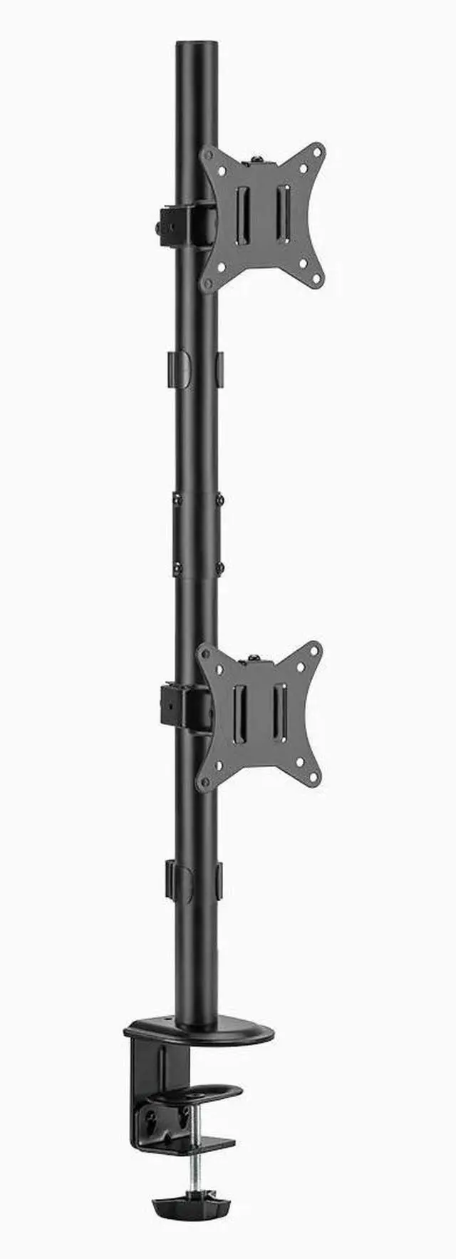 Introducing the Desky Dual Vertical Monitor Mount an optimal, durable solution for the home ergonomic worker. Constructed of a steel structure and offering support for two 17" - 32" monitors weighing up to 9 kg ( 19.8 lbs) per arm, this mount provides stable, long-lasting functionality. The flexibility of design ensures you can adjust your monitors according to your preferences and angles, while both grommet and clamp mounting options make installation on almost any work surface simple and efficient. With a detachable VESA plate for quick installation and cable clips included for optimal organization and tidiness of your workspace, you can appreciate enhanced productivity and improved comfort with the Desky Dual Vertical Monitor Mount.