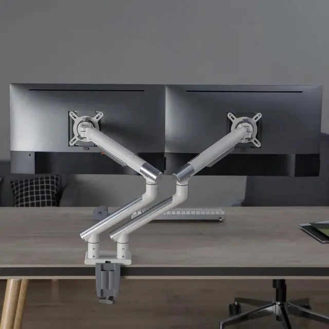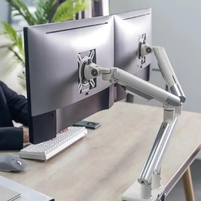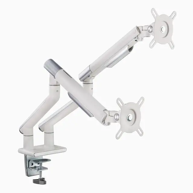Subtle, slimline design allows you to raise your monitors to eye level, saving neck, back and eye strain by allowing you to find the most ergonomic position. VESA mounts allow any compatible monitor to be loaded or removed effortlessly. Available in white or space gray. FeaturesSpring Mounted for Strength and