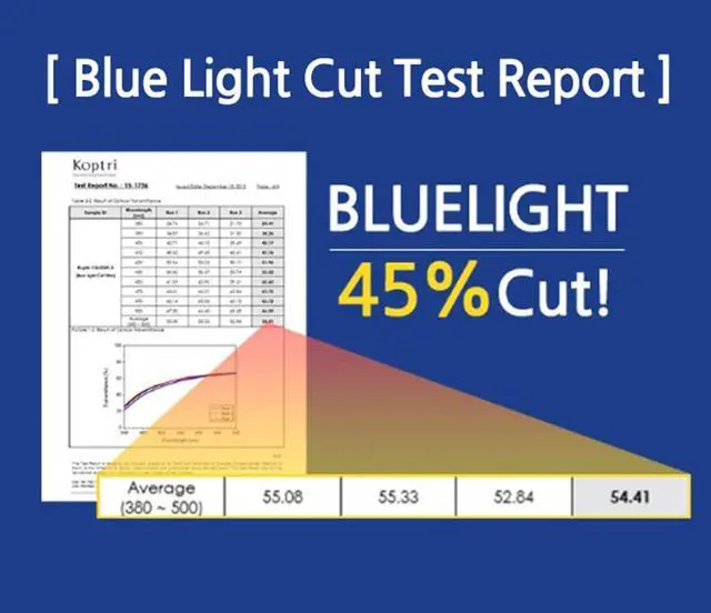 Effectively blocks 99% (200-400nm) of UV light and Approx 45.6% of blue light (380-500nm), Prevents dry eye syndrome and reduces eye strain by blocking Blue Light and UV