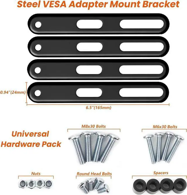 Easy Installation: Package includes vesa adapter mount bracket kit x 1, mounting hardware kit x 1, detailed user manual x 1. Anyone can realize easy installation. But please bring your own phillips screwdriver and open-end wrench.