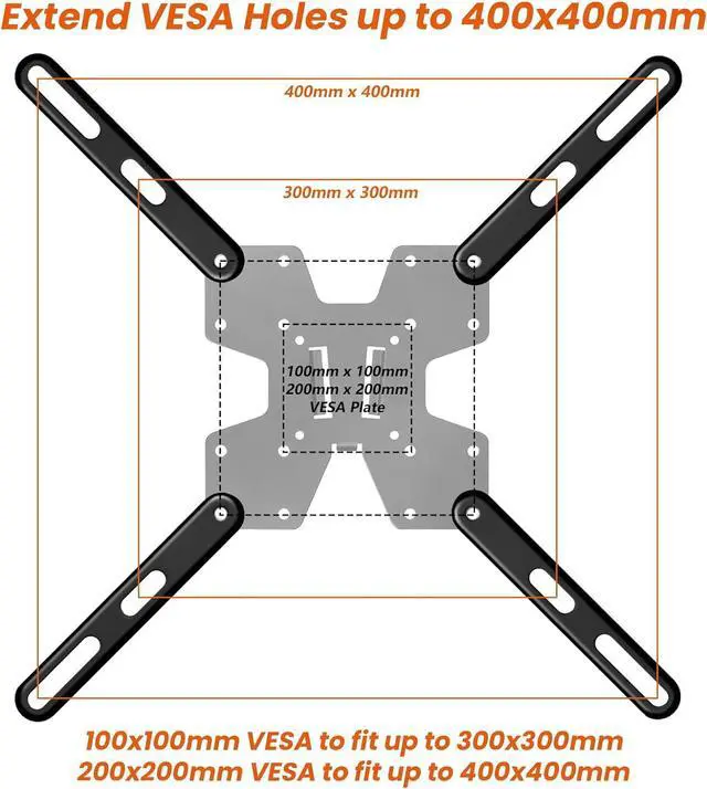 Adapter Function: The TV mount adapter allows VESA 200 x 200 compatible TVs with VESA 400 x 400 hole pattern. It attaches easily to wall mounts and any mount with a certain interface, include most irregular VESA panels, e. g. 200 x 400mm, etc.