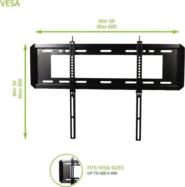 SAFE & SECURE - Supports TVs weighing up to 150 lb (68 kg), with VESA sizes from 50x50 to 600x400.
