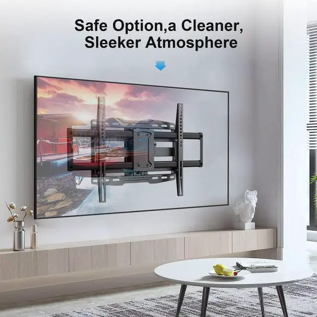 ADJUSTABLE VEIW ANGLE - This full motion tv wall mount with +5° /-15° tilt to reduce glare, swivel tv mount with ±45°swivel (max swivel angle depends on screen size), level adjusts ±4° for maximum viewing flexibility, all these will make you find the most comfortable and healthiest viewing position, provide your best viewing experience.