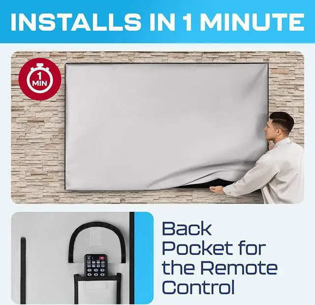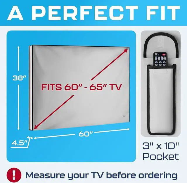 EASY TO INSTALL. You wont need any special skills to install this tv screen protector 65 inch around the mount on the wall or on the ceiling. The weatherproof tv cover outdoor slides easily to any television and mount.