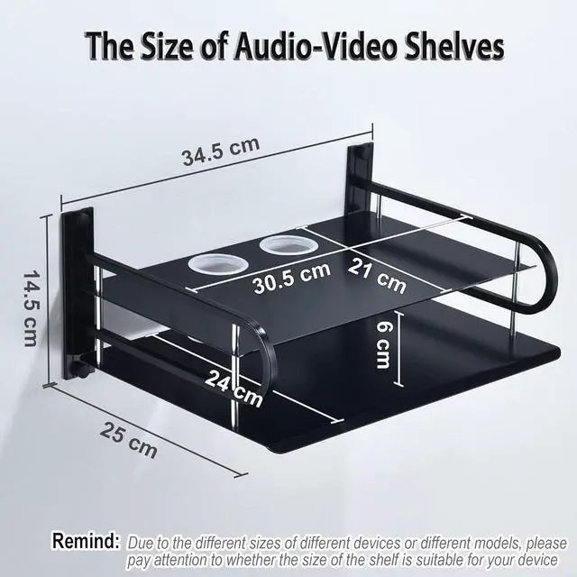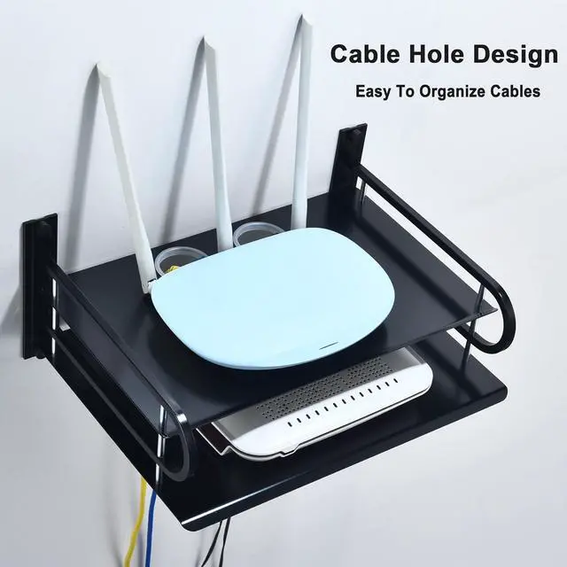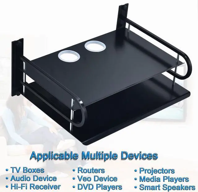 Practical wall shelf: the electronic stand can easily store and organize electronic devices such as routers/projectors/DVD/Blu-Ray players/game consoles/satellite TV box/cable TV box, etc. It can also be used to place potted plants, decorations, alarm clocks and other items. Cable hole design with protective ring for easy cable layout and organization.