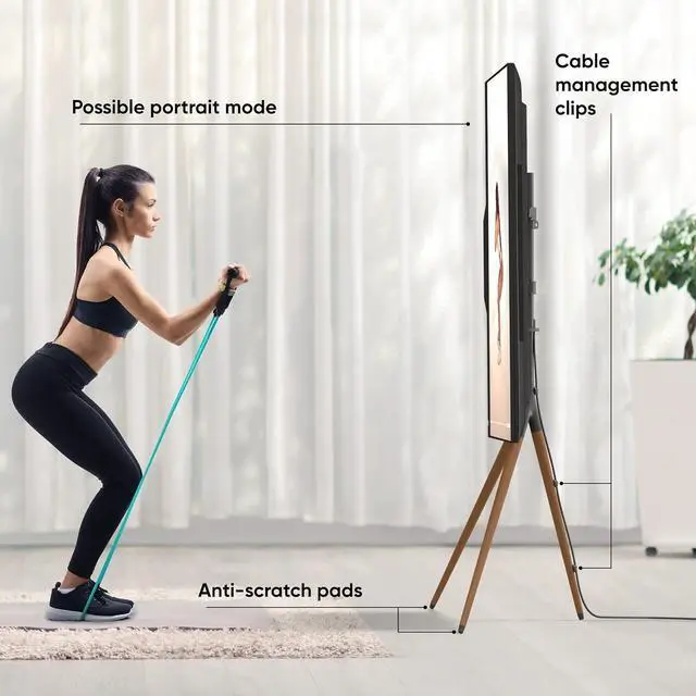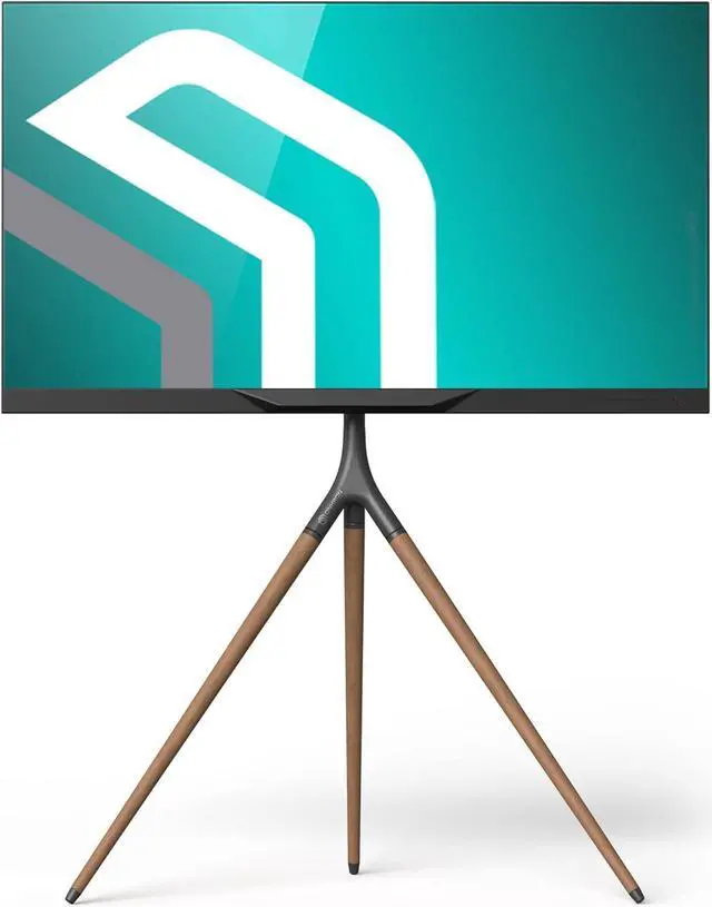EFFICIENT EASEL TV STAND | Thin TV stand comes with cable management clips to help you organize your interior and get rid of messy cables laying around | The TV stand tall has an additional safety system wall mounting, in case you want to protect your TV even more | This TV easel is one of the best in corner TV stands category