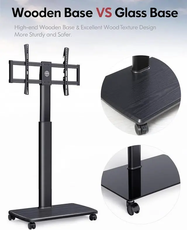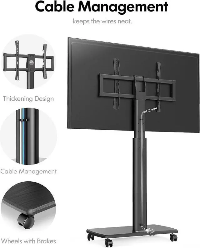 Casters: Rolling TV stand on wheels fit for most of 32" 35" 40 42" 45" 50" 55" 60" 65" TVs scree. Mounting bracket hold up to 88 lbs. VESA Patterns 200x200 mm to 600x400 mm. It's a good replacement for your old wall bracket.