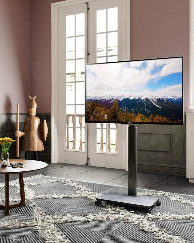 Swivel & Height Adjustable: The bracket can swivel left and right and features height adjustments for optimal viewing experience. Security design prevent your TV from falling down and slipping.