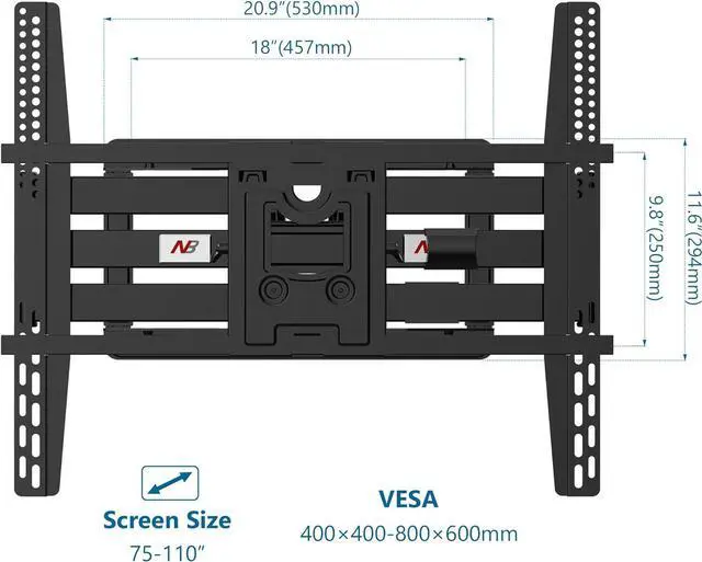 Fits most 75"-110" inch Heavy TVs with load capacity up to 200 lbs( 90.9 kg), Fit most of the VESA mounting hole for all big screen TV in the market, VESA Compatible from 400*400 up to 800*600 mm