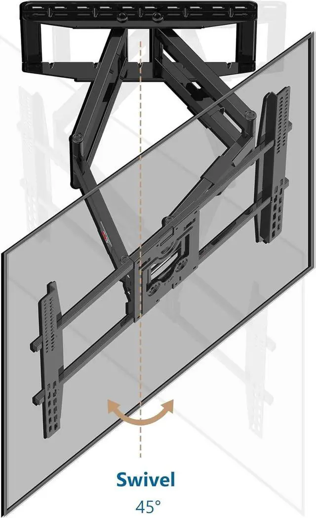 Rotation angle is adjustable at ±5°which help you to correct the installation error and ensure that the TV is always in a horizontal position, The maximum support for the left& right swivel is 45 degrees (when the TV is not installed) will allow you to change the viewing angle of the TV at daily life.