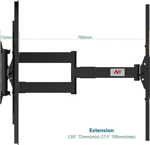 Ultra Slim Full-motion articulating wall mount extends up to 27.5 inches (700mm) from the wall, Retracts to 2.8 (72mm) to save space, Tilt Angle -5°~10° for optimal viewing position. Double Arms instead of one, constructed of high-quality steel materials, makes it stronger and more reliable.