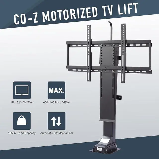 BIG SCREEN CAPABLE: Our TV lift provides up to 154 lb weight capacity for 32" to 70" screens. Made of reinforced steel, its perfect for flat-screen TVs, HDTVs, Curved, OLED, and Smart TVs.