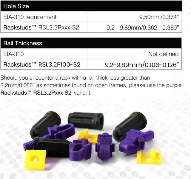 TRUSTED GLOBALLY: Rackstuds Series II is the preferred choice for data centres. These rack mount hardware essentials have sold over 1.5 million units, now enhanced to be over 30% stronger, fitting thicker rails with longer threads for improved leverage strength to fit even thicker rails, confirming our status as the essential network rack screws substitute.