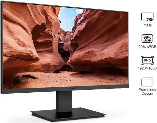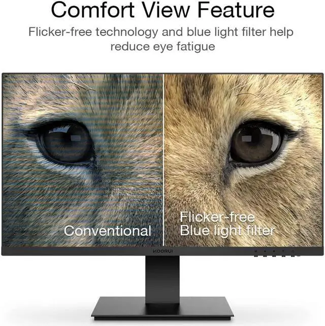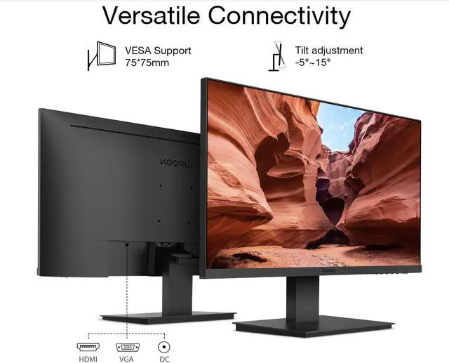 MULTIPLE PORTS: KOORUI monitors provide video interfaces via HDMI and VGA ports. This HDMI monitor is with 60Hz refresh rate (compatible with most normal graphics cards) and FHD 1920x1080p resolution. You can connect the edge-less monitor to Xbox, PC and laptops etc, transmitting high-quality images, any switch between office and entertainment.