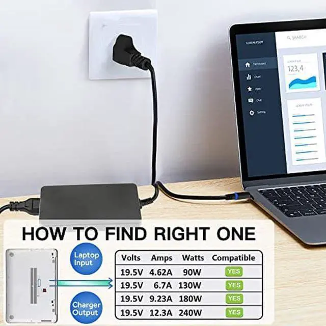 POWER SPECS: Input:100-240V 50-60Hz Output:19.5V-12.3A Watts: 240 Watts(Aslo Compatible With 19.5V 9.23A 180W 150W 19.5V 6.7A Watts: 130 Watts)