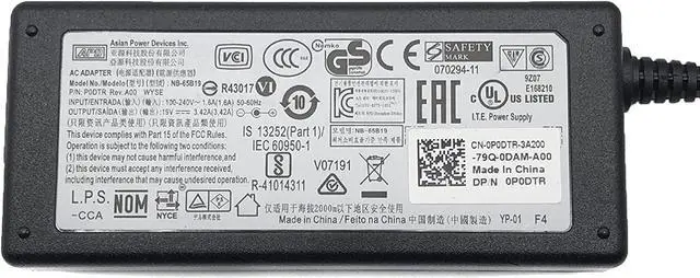 Specification : 65W - Input 100-240V 1.6A - Output 19V 3.42A - Tip size : 5.5mm*2.5mm