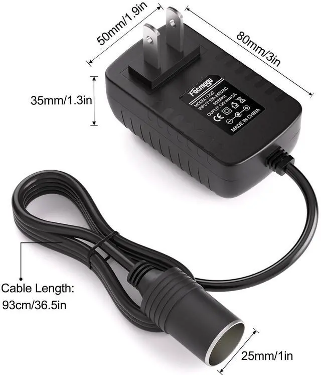 • Easy to Use: This ac to dc adapter Converts 100-240V AC (outlet) current to 12V DC output, just plug in your car cigarette lighter and make sure your application compatible with 12V.