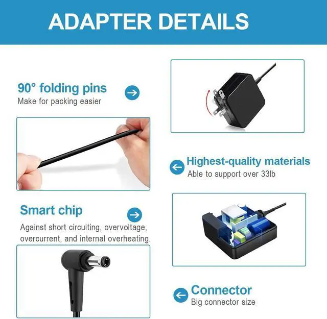 Total Cord Length: 7.5Ft Extra Long Power Supply Cord