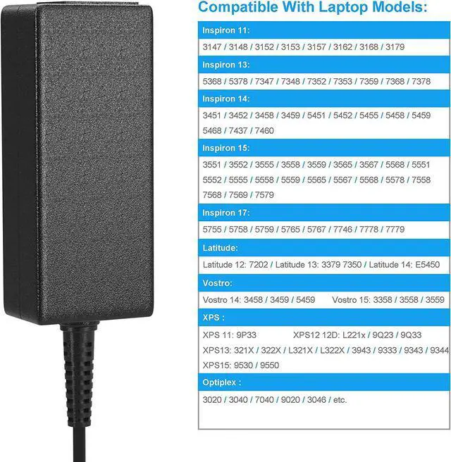 Compatible Factory Model: LA45NM140/DA45NM140 4. New Original AC Adapter include Power Cord with non-retail packaging 5. Designed for : XPS 13 L321X XPS 13 L322X XPS 13 9343 XPS 13 9350 XPS 13 9360 XPS 13 9365 XPS 13 9370 XPS 11 9P33 XPS 9Q33